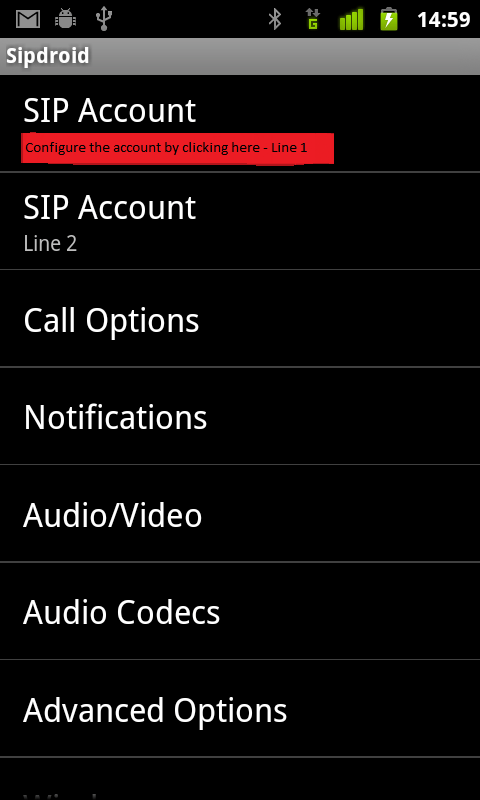 In one of the SIP accounts (in my phone I used the first one) use the following settings: