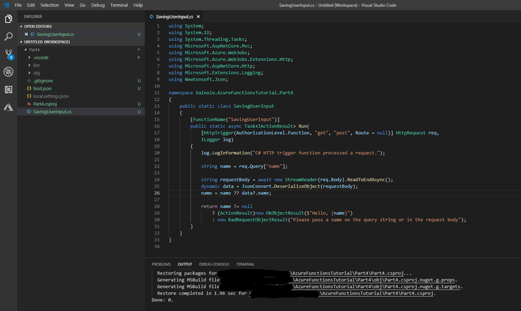 Previous Tutorial: Azure Functions – Part 3: Handling HTTP Query GET and POST Requests