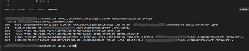 dotnet add package Microsoft.Azure.WebJobs.Extensions.Storage